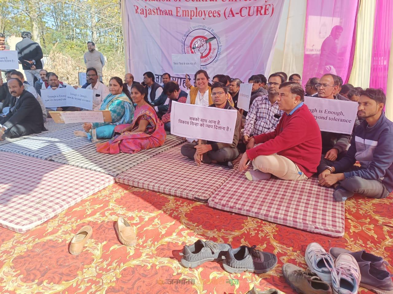 राजस्थान केंद्रीय विश्वविद्यालय में कर्मचारियों का अनिश्चितकालीन धरना दूसरे दिन भी रहा जारी
