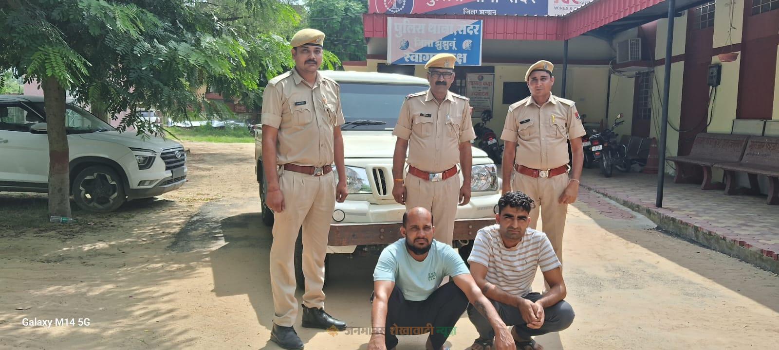 झुंझुनूं में मकान पर हमला-आगजनी करने के 2 आरोपी गिरफ्तार:पैसे को लेकर विवाद था, तोड़फोड़ की; कीमती सामान लूटा, कैंपर जब्त