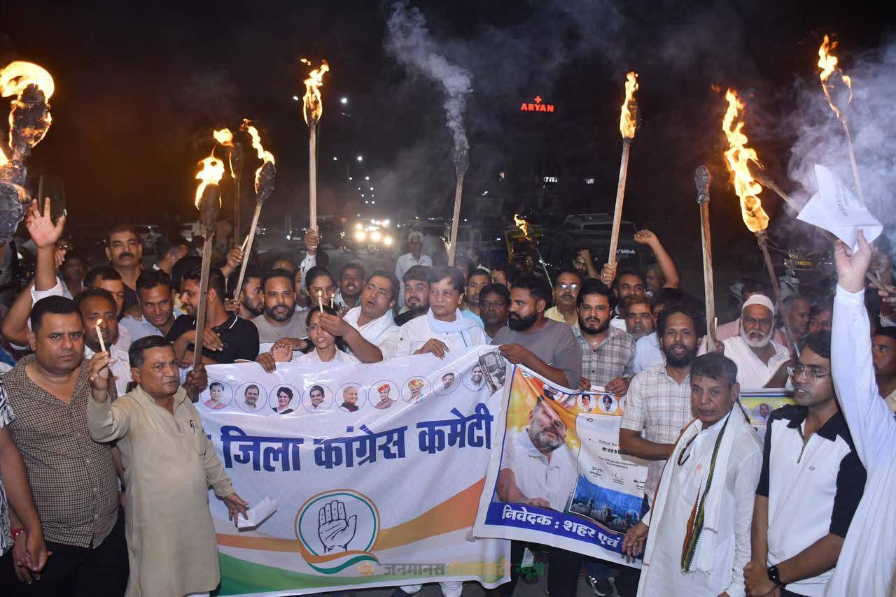 जिला कांग्रेस ने कांग्रेस कार्यालय से वीरगति स्मारक तक केंडल मार्च निकाला