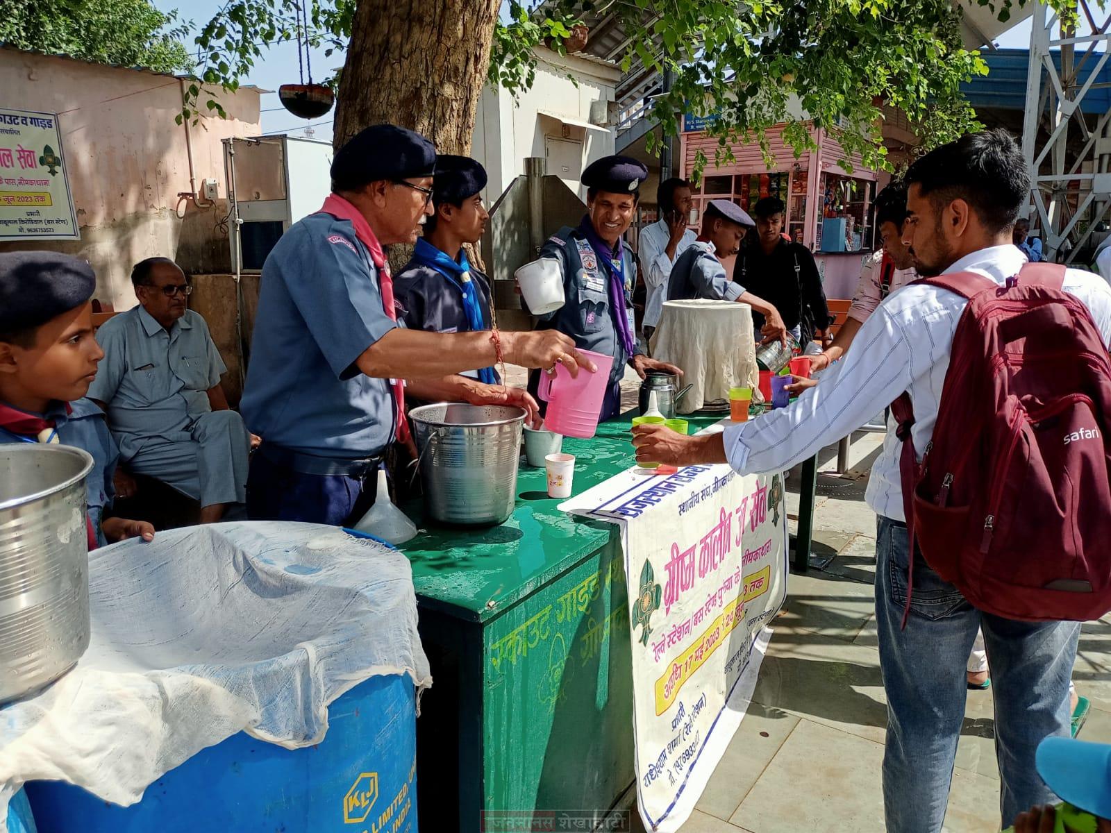 राजस्थान राज्य भारतीय स्काउट गाइड स्थानीय संघ नीमकाथाना के तत्वाधान में रेलवे स्टेशन नीमकाथाना पर रहगीरों को रूहअफजा शरबत पिलाया