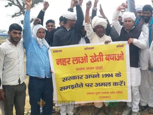 प्रदेश सचिव गुर्जर ने कहा सरकार 1994 के समझौते को तत्काल लागू करें, शेखावाटी का अधिकतर किसान खेती पर निर्भर है, पानी नहीं रहेगा तो किसानों का पशुधन, किसान की आजीविका नहीं चल पाएगी। उन्होंने चेतावनी दी कि अगर सरकार ने जल्दी किसानों के पक्ष में फैसला नहीं लिया तो होने वाले लोकसभा चुनाव में शेखावाटी नहीं राजस्थान का पूरा किसान सड़कों पर उग्र आंदोलन कर भाजपा का बहिष्कार करेगा।