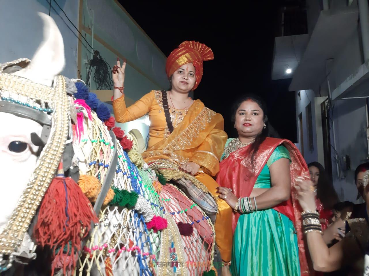 भार्गव परिवार ने बेटी प्रतिभा को घोड़ी पर बैठाकर निकाली बिंदोरी