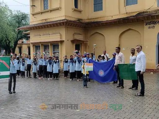 खेतड़ी में तिरंगा अभियान के तहत निकाली रैली:स्कूल कैंपस से किया रवाना, स्कूली बच्चों ने किया लोगों को जागरूक