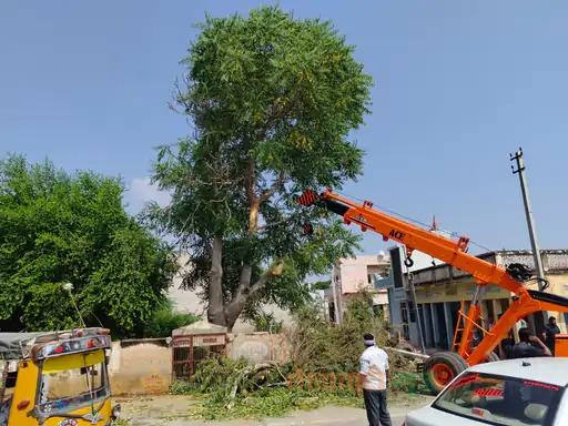 सुजानगढ़ : सुजानगढ़ शहर की नगर परिषद के सामने सूने पड़े चौरड़िया नोहरे में सोमवार की रात खेजड़ी का एक बड़ा पेड़ बिजली के तारों पर गिर जाने से चार खंभे टूटकर गिर गए। एक खंभा गिरने से कार नीचे दब गई। घटना के बाद आसपास अफरातफरी का माहौल हो गया। बिजली विभाग के तुरन्त सप्लाई बन्द करने के कारण बड़ा हादसा टल गया। मंगलवार को बिजली विभाग ने खंभे बदल दिए। साथ ही नोहरे के मालिक ने वहां खतरनाक बने तीन बड़े पेड़ो को मशीन लगाकर गिरवा दिया।