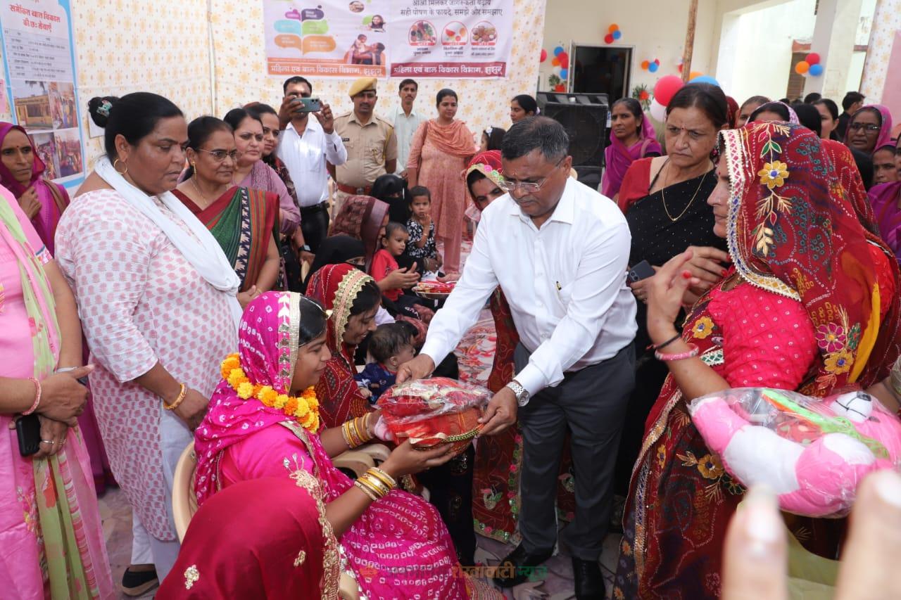 इस दौरान सायरा पत्नी शाहरूख एवं पूनम पत्नी अक्षय की गोद भराई, फिरदोष एवं ज्योति का अन्नप्रासन, तनीश एवं आयशा का प्रवेशोत्सव, मोनिका, रेखा, गंगा, सबाना, फरहाना का बेटी जन्मोत्सव, जान्हवी एवं दिक्षिता के जन्म दिवस पर केट कटिंग की गई। सुनिता, सोनम, कमलेश, पूजा, लीला, रजना को प्रधानमंत्राी मातृत्व योजना की चैक राशि प्रदान की गई। इस दौरान अंबुजा फाउंडेशन चिडावा, सामाजिक कार्यकर्ता के रूप में अमर कुरैशी का सम्मान किया गया। पोषण माह में उत्कृष्ट कार्य करने पर बाल विकास परियोजना अधिकारी, महिला पर्यवेक्षक, आंगनबाड़ी कार्यकर्ताओं का सम्मान किया गया।