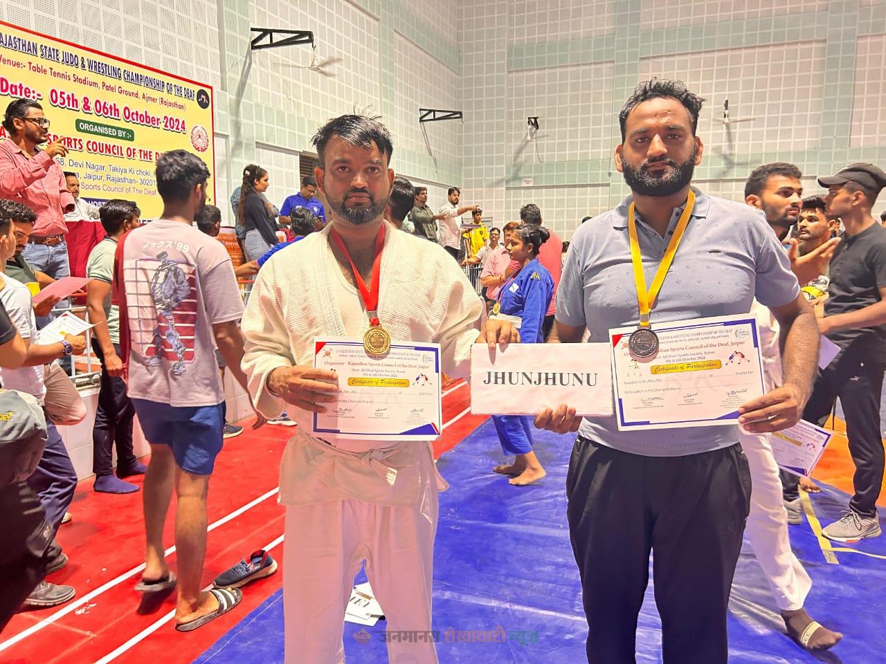 झुंझुनूं : अजमेर में हुई प्रथम राजस्थान राज्य जूडो एवं बधिरों की कुश्ती चैम्पियनशिप में जिले के दो मूक बधिर खिलाड़ियों ने पदक जीते हैं। जिला डीफ स्पोर्ट्स सोसायटी के अध्यक्ष पंकज झाझड़िया ने बताया कि धर्मवीर निवासी खोहरी ने जूडो ने स्वर्ण पदक जीता। वहीं अनिल जांगिड़ निवासी शीशीया ने कुश्ती में कांस्य पदक जीता। राजस्थान बधिर खेल परिषद के अध्यक्ष विनोद मित्तल, महासचिव जितेन्द्र सिंह, उपाध्यक्ष पंकज झाझड़िया ने कहा कि अब खिलाड़ी आगे खेलने जाएंगे।