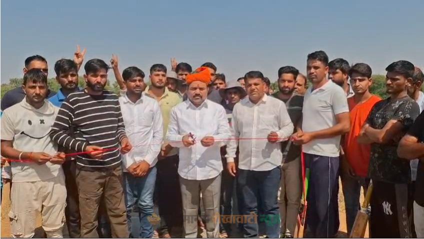 खेतड़ी : खेतड़ी क्षेत्र की ग्राम पंचायत संजय नगर के ढाणी ढहरवाला में शनिवार को ढहरवाला क्रिकेट प्रतियोगिता का शुभारंभ हुआ। प्रतियोगिता के उद्घाटन के अवसर पर मुख्य अतिथि विधायक प्रत्याशी व समाज सेवी मनोज घूमरीया थे। समाजसेवी मनोज घुमरिया ने गेंद खेलकर क्रिकेट प्रतियोगिता का शुभारंभ किया। क्रिकेट प्रतियोगिता कार्यक्रम को संबोधित करते हुए मनोज घुमरिया ने कहा कि खिलाड़ियों को खेल-खेल की भावना से खेलना चाहिए खेलों से आपसी सद्भावना बनी रहती है। खेलों से मानसिक व शारीरिक विकास होता है। उन्होंने कहा वे हमेशा खिलाड़ियों के सहयोग के लिए तैयार है।