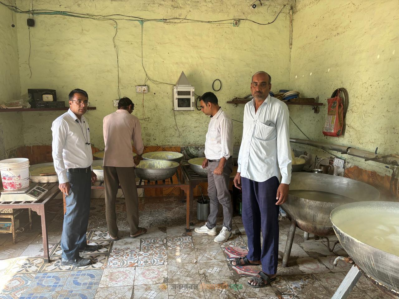 जिला कलेक्टर अभिषेक सुराणा तथा मुख्य चिकित्सा एवं स्वास्थ्य अधिकारी डॉ मनोज शर्मा के निर्देशानुसार त्योहारी सीजन को देखते हुए खाद्य सुरक्षा अधिकारियों के जांच दल द्वारा साहवा में मैसर्स प्रगति चिलिंग प्लांट से दूध, मैसर्स पंचमुखी किराना स्टोर से घी, मैसर्स दीपक किराना एंड जनरल स्टोर से घी और मैसर्स सिद्ध मावा भण्डार पूनरास से घी और मावा के कुल 6 नमूना लेकर प्रयोगशाला जयपुर भिजवाए गए।