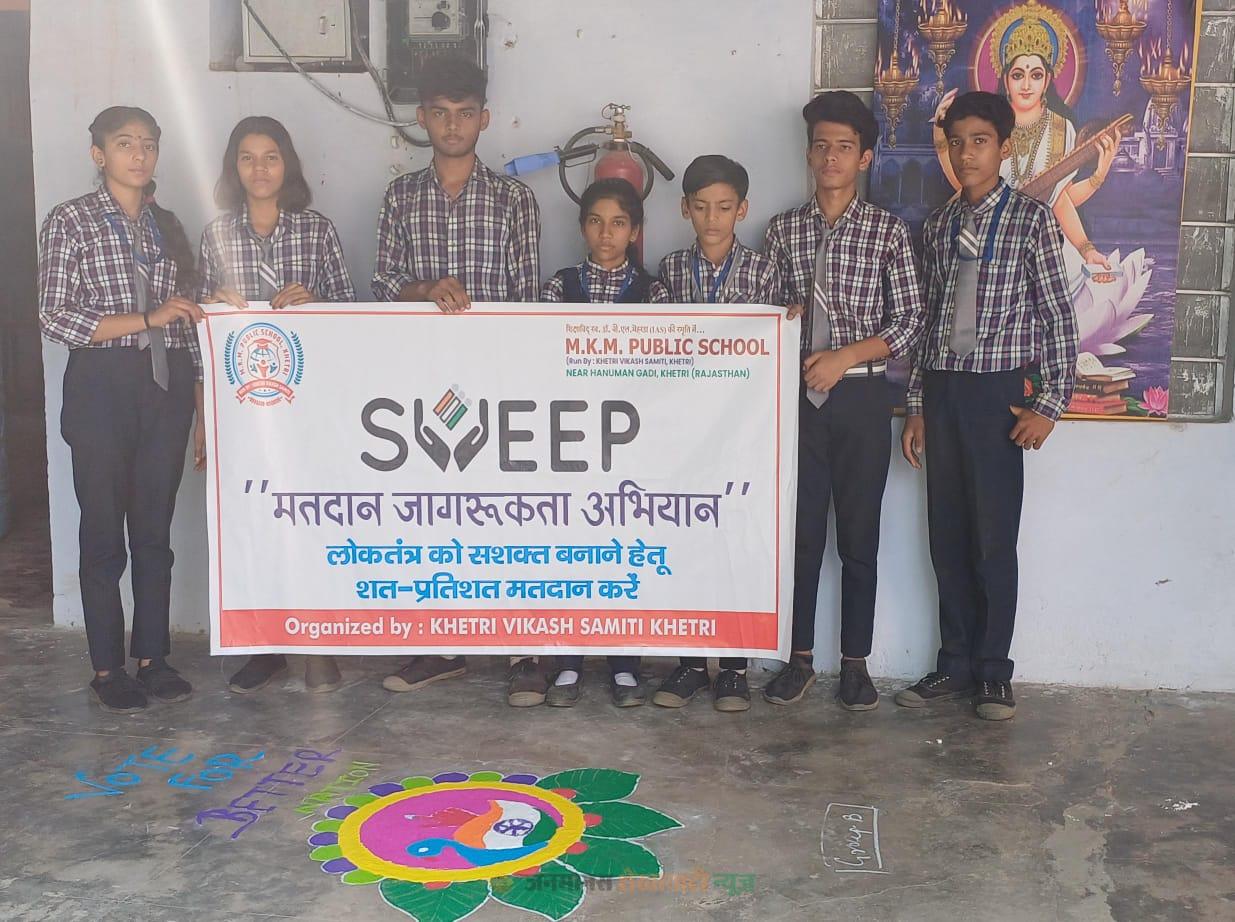 एम.के.एम.पब्लिक स्कूल में मतदान जागरूकता अभियान के अंतर्गत रंगोली व पोस्टर प्रतियोगिता का आयोजन किया