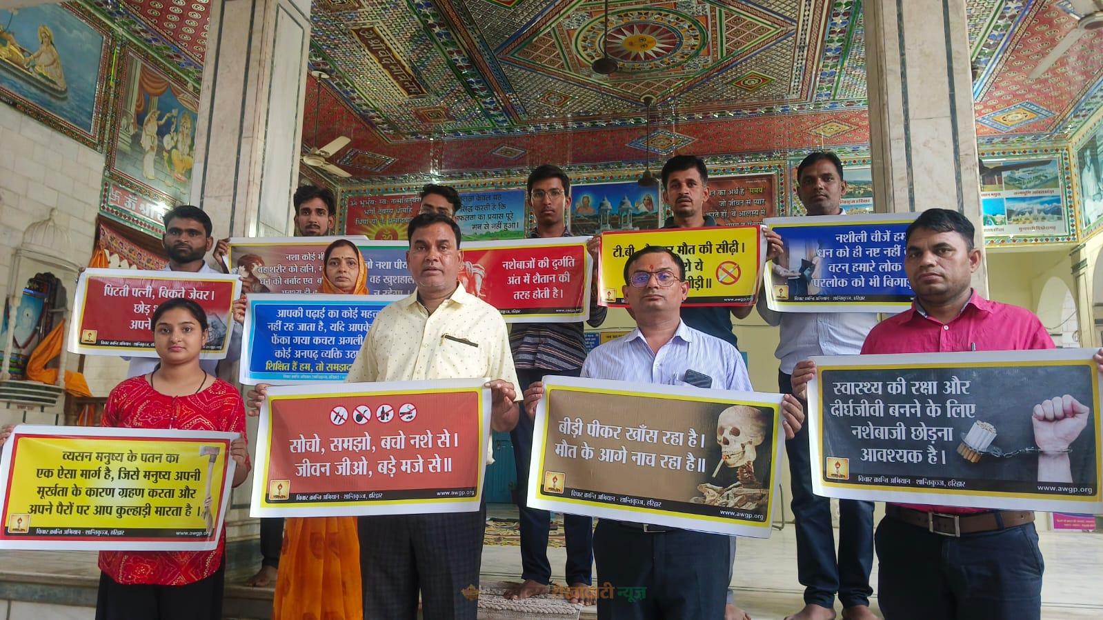 गायत्री परिवार नवलगढ़ के संयोजक कृष्ण कुमार दायमा गायत्री ने बताया कि गायत्री परिवार के युवाओं के द्वारा आज डॉक्टर दयाशंकर जांगिड़ के सानिध्य में स्थानीय गायत्री शक्तिपीठ मंदिर में युवाओं के द्वारा नशा मुक्ति के कई दर्जन सन बोर्ड लगाकर नशामुक्ति का संदेश देकर नशा न करने की जागृति फैलाई। गायत्री विद्यापीठ नवलगढ़ के प्रधानाचार्य कृष्ण कुमार दायमा ने जीवन में नशा न करने का संकल्प दिलाया ।गायत्री परिवार द्वारा संचालित प्रज्ञा पुस्तकालय में भी पुस्तकों की साफ सफाई ,कवरिंग तथा अनुक्रमणिका बनाकर उनको व्यवस्थित किया गया। इस अवसर पर मुख्य अतिथि एलाइंस इंटरनेशनल क्लब के अध्यक्ष डॉ दयाशंकर जांगिड़ ने कहा कि गायत्री परिवार द्वारा किए जा रहे रचनात्मक कार्यक्रम हम सबके लिए प्रेरणा देने वाला है। कृष्ण कुमार दायमा के नेतृत्व में युवाओं के द्वारा पावन त्यौहार पर की गई श्रमदान, सजावट, नशा मुक्ति, गर्भ संस्कार, ओर कुरीतियों से संबंधित सन बोर्ड लगाकर समाज को जागृत करने का कार्य गायत्री परिवार के द्वारा लगातार किया जा रहा है जो प्रशंसनीय है ।