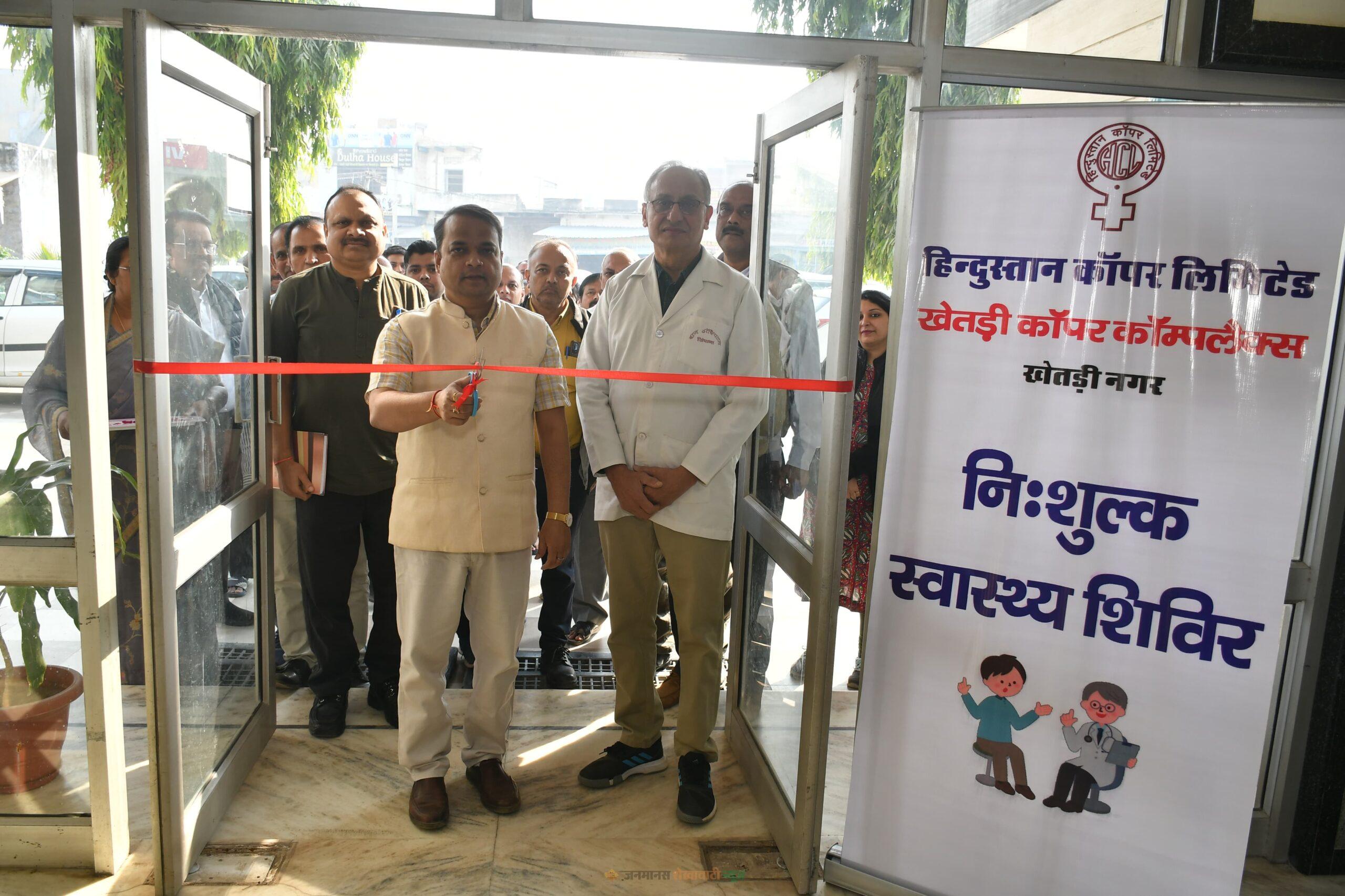 खेतड़ी नगर : खेतड़ीनगर के केसीसी प्रोजेक्ट की सीएसआर योजना के तत्वाधान में गुरुवार को नि:शुल्क स्वास्थ्य शिविर का आयोजन किया। कार्यक्रम के मुख्य अतिथि केसीसी महाप्रबंधक जीडी गुप्ता थे, जबकी अध्यक्षता डॉ रणवीरसिंह ने की। कार्यक्रम के दौरान सर्वप्रथम अतिथियों ने विधिवत रूप से फीता काटकर शिविर का शुभारंभ किया।