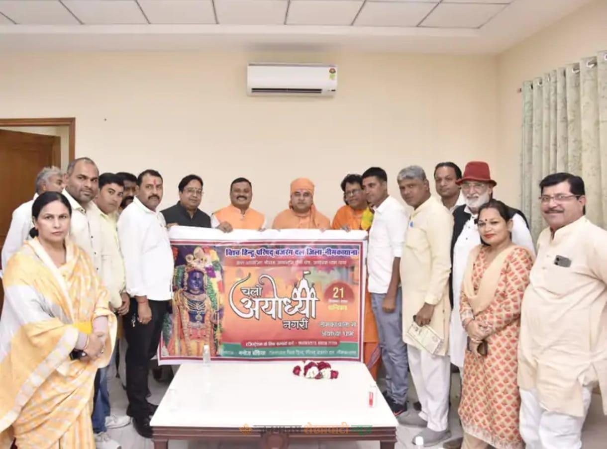 राम जन्मस्थली धर्मयात्रा का पोस्टर विमोचन:21 दिसंबर को नीमकाथाना से अयोध्या जाएगी यात्रा, 10 दिसंबर तक होंगे रजिस्ट्रेशन