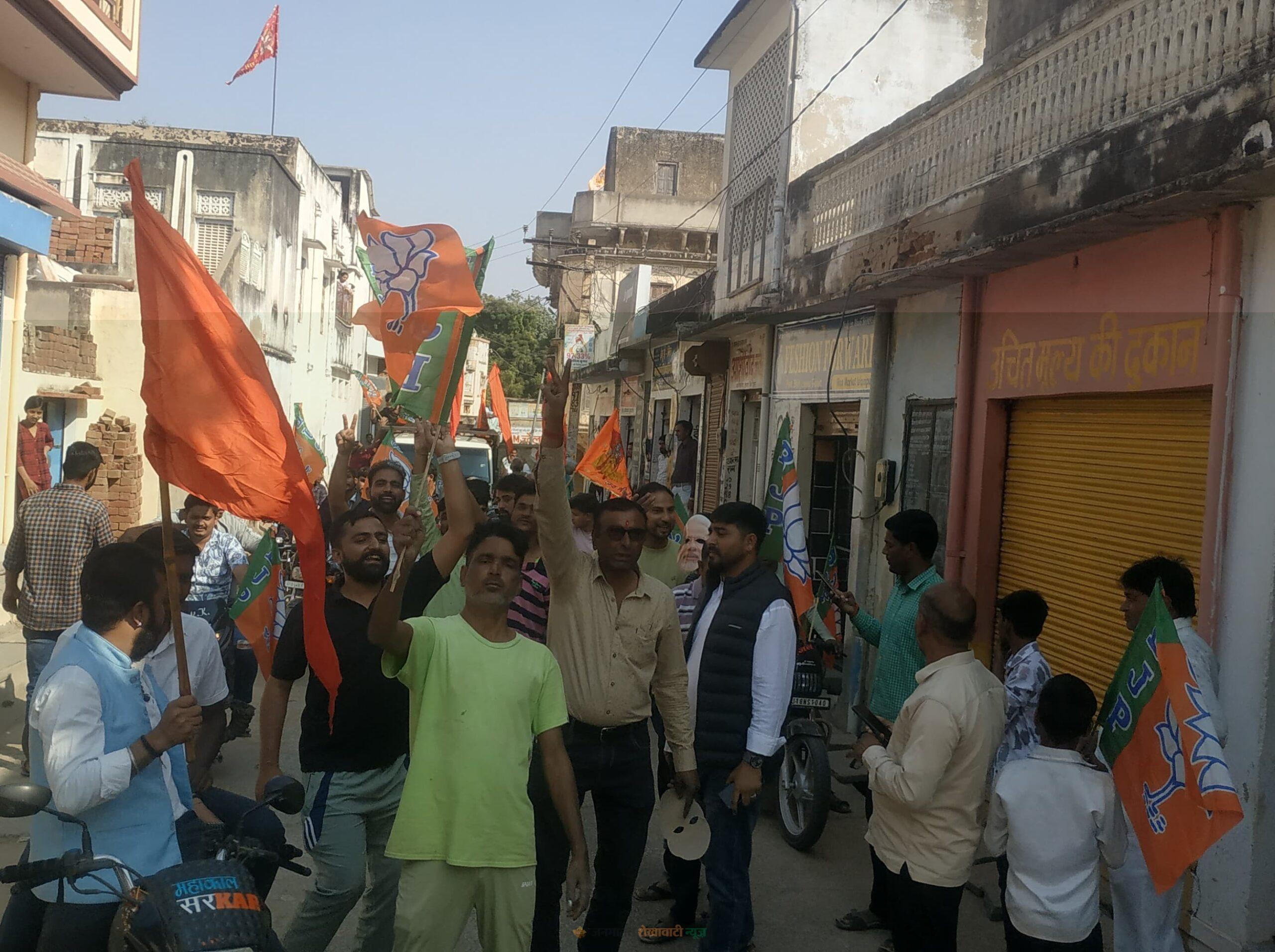 बीजेपी की जीत पर कार्यकर्ताओं ने विजय जुलूस निकालकर मनाया जश्न
