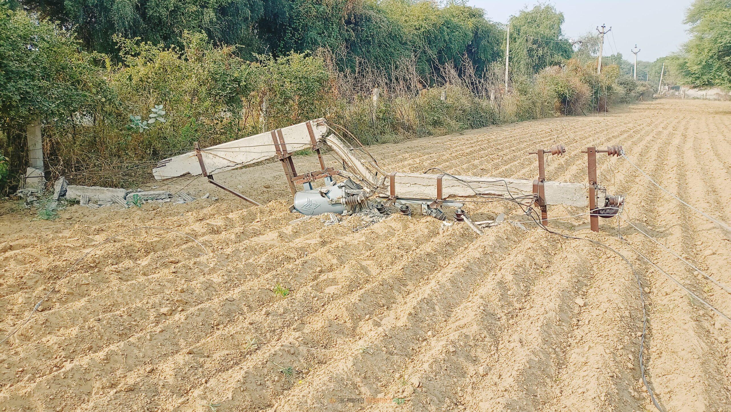 विद्युत विभाग की बड़ी लापरवाही : सहड़ गांव में तीन दिन से टूटा पड़ा है 11 हजार केवी लाईट का पोल, धूल फांक रही है डीपी