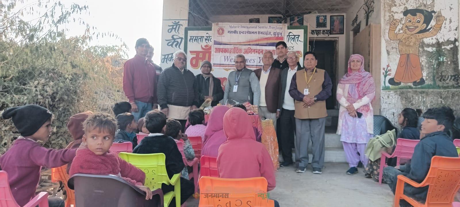 झुंझुनूं : महावीर इंटरनेशनल सनराइज द्वारा देवेंद्र कुमार गोड़ के सौजन्य से स्वर्गीय पुष्पा देवी गोड़ के जन्मदिवस पर रीको औद्योगिक क्षेत्र स्थित ममता की पाठशाला में 60 जरूरतमंद बच्चों को स्नेक्स व स्टेशनरी वितरण की गई। कार्यक्रम में संस्था संरक्षक डॉ एसएन शुक्ला, अंतर्राष्ट्रीय उपाध्यक्ष श्याम सुंदर जालान, रीजन सेक्रेटरी महेश कुमार मुंड, जॉन चैयरमेन नागरमल जांगिड़, ओमप्रकाश ककराणीया, देवेंद्र कुमार गोड़, आदित्य गोड़, आकाश गोड़, प्रदीप कुमार शुक्ला, शिव प्रसाद महर्षि, अशोक शर्मा, प्रमोद कुमार शर्मा, संस्था प्रधान सुमन बुरी, कुशल, कीर्ति, यशस्वी, काफी संख्या में गणमान्य जन एवं वीर वीराएं उपस्थित रहे