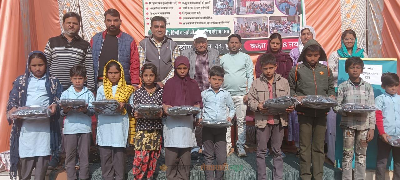 स्वेटर पाकर बच्चों के चेहरे खिले, मदरसा का शिक्षक बना दानदाता: विधार्थियों को बांटे स्वेटर