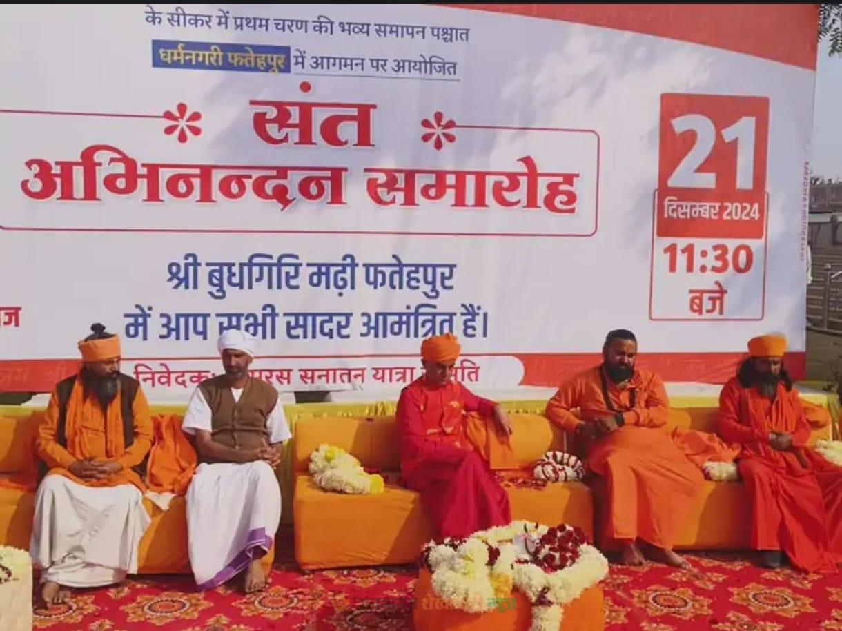 सीकर : फतेहपुर के बुद्धगिरी मडी के महंत दिनेश गिरी महाराज द्वारा पिछले 10 दिनों से शेखावाटी के कई शहरों में समरस सनातन यात्रा निकाली गई थी जिसका समापन शुक्रवार को सीकर शहर में हुआ, समापन के बाद शनिवार दोपहर को बुद्धगिरी मढ़ी के महंत सहित अन्य साधु संत मढ़ी परिसर पहुँचे।
