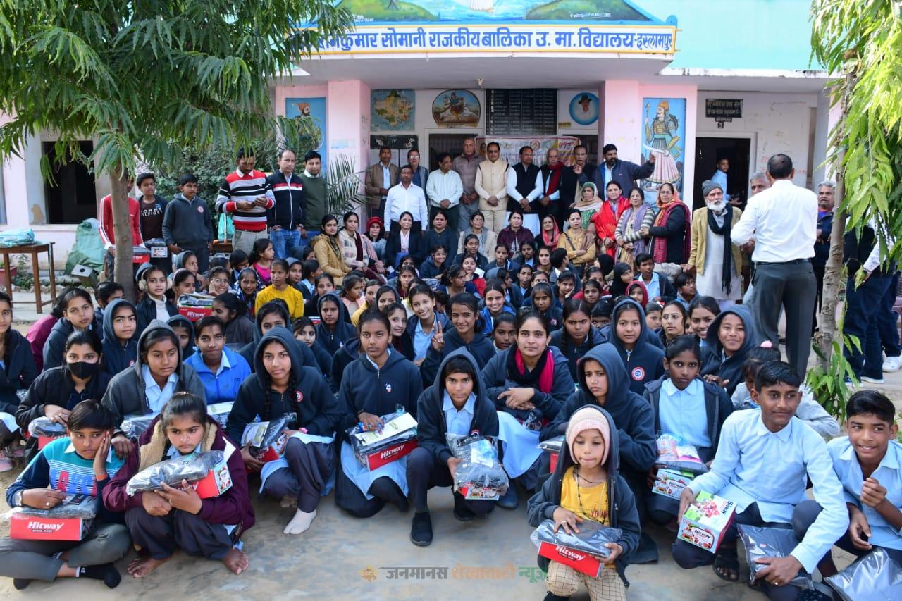 पत्नी के जन्मदिन पर इस्लामपुर की सोमानी स्कूल में 150 बालिकाओं को बांटे जूते, जुराब व स्वेटर