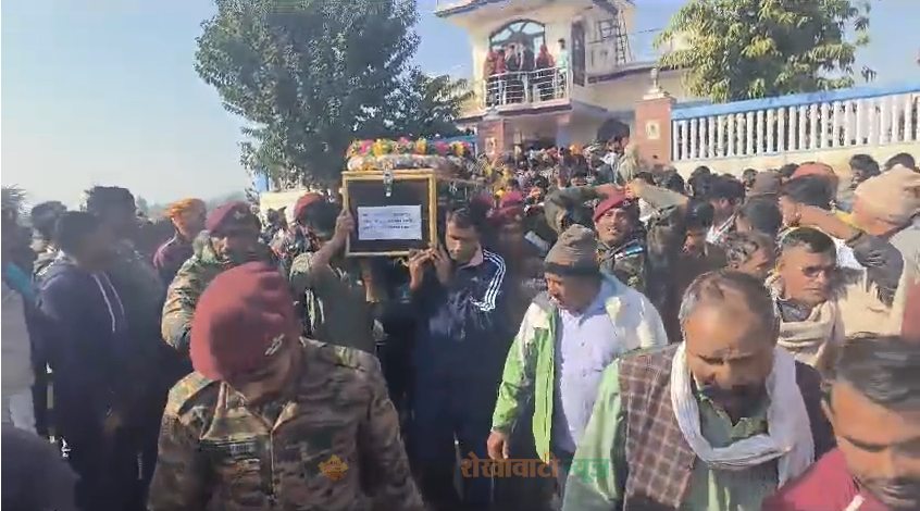 सिंघाना : जम्मू-कश्मीर में शहीद हुए झुंझुनूं के जवान ईश्वर सिंह गुर्जर (42) का शुक्रवार को सैन्य सम्मान के साथ अंतिम संस्कार किया गया। जवान के 15 साल के बेटे आकाश ने उन्हें मुखाग्नि दी। ईश्वर सिंह को अंतिम विदाई से पहले उन्हें सिंघाना थाना से उनके पैतृक गांव डूमोली कलां तक 8 किलोमीटर की तिरंगा यात्रा निकाली गई। जयपुर से आई राज रिफ (राजपूताना राइफल्स) यूनिट के जवानों ने गार्ड ऑफ ऑनर दिया।