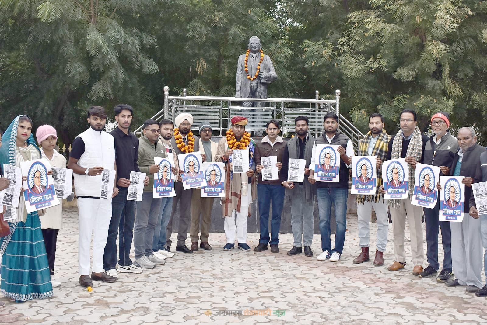 चूरू : जिला मुख्यालय पर राजस्था प्रदेश कांग्रेस कमेटी (अनुसूचित जाति एवं जनजाति विभाग) के कार्यकारी प्रदेश अध्यक्ष रामेश्वर चांवरिया के मुख्य आतिथ्य में चूरू जिला मुख्यालय पर संविधान निर्माता भारत रत्न बाबा साहेब डॉ. भीमराव अम्बेडकर मुर्ति स्थल पर संविधान रक्षक अभियान का शुभारंभ किया गया।