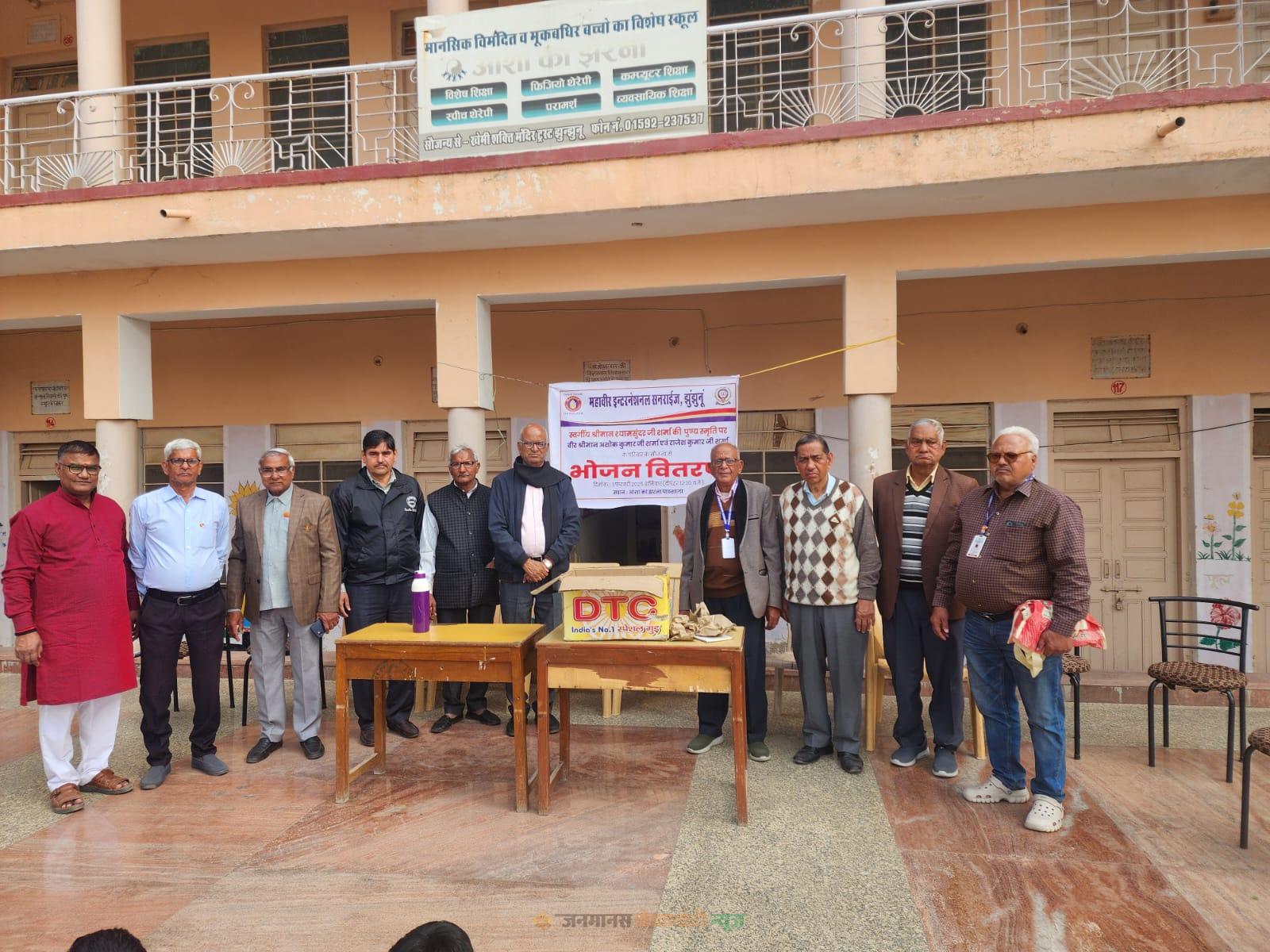 झुंझुनूं : महावीर इंटरनेशनल सनराइज द्वारा वीर अशोक कुमार शर्मा, राजेश कुमार शर्मा के सौजन्य से स्वर्गीय श्यामसुंदर शर्मा की पुण्य स्मृति पर आशा का झरना पाठशाला में मुक बधिर बच्चों को भोजन वितरण किया गया। उपरोक्त कार्यक्रम में संस्था चैयरमेन राजेंद्र प्रसाद जोशी, संरक्षक डॉ एस एन शुक्ला, अंतर्राष्ट्रीय उपाध्यक्ष श्यामसुंदर जालान, रीजन सेक्रेटरी महेश कुमार मुंड, जॉन चैयरमेन नागरमल जांगिड़, देवेंद्र कुमार गौड़, ओमप्रकाश ककराणीया, रामगोपाल शर्मा, शिव प्रसाद महर्षि, अशोक कुमार शर्मा, राजेश कुमार शर्मा, बिहारी लाल सैनी, प्रदीप कुमार शुक्ला, मुबारक अली पहाड़ियांन, एवं काफी संख्या में गणमान्य जन व वीर वीराएं उपस्थित रहे।