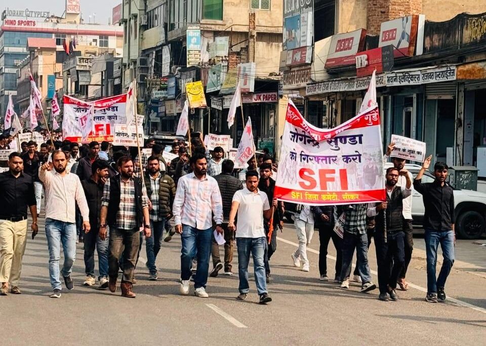 इस एसएफआई प्रदेश अध्यक्ष सुभाष जाखड़, शेखावाटी यूनिवर्सिटी अध्यक्ष बिजेंद्र सिंह ढाका, सत्यजीत भींचर प्रदेश उपाध्यक्ष पंकज डॉगीवाल, कमल भींजासी, अभिषेक महला, यश सोनी सहित छात्र नेताओं सम्भोधित किया। इस दौरान प्रदेश अध्यक्ष सुभाष जाखड़, जिला अध्यक्ष ओम प्रकाश डूडी, प्रदेश उपाध्यक्ष, पंकज डॉगीवाल, विजेंद्र ढाका, सुनील गोदारा, दिनेश चौधरी, मनीष किलानिया, अभिषेक, शहर अध्यक्ष यश सोनी, बलवीर, मनोज महला, नरेंद्र गुर्जर, विकास जांगिड़, भूपेंद्र शेखावत, इरफ़ान किरडोली, तोसीफ पठान, शरफराज चौहान, नविन चौधरी सहित सेकड़ो की सांख्य मे कार्यकर्ता मौजूद रहे l