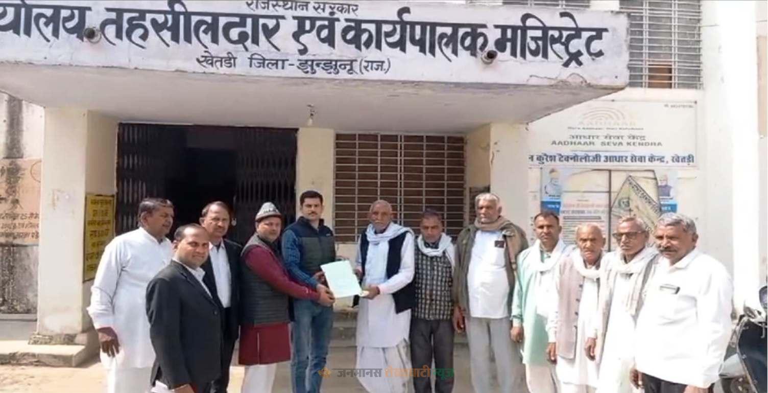 खेतड़ी : खातीपुरा के ग्रामीणों ने मंगलवार को राजस्व ग्राम खातीपुरा को ग्राम पंचायत रवां से हटाकर रोजड़ा जुझारपुर में जोड़ने पर विरोध प्रकट करते हुए खातीपुरा को खां पंचायत में रखने की मांग को लेकर तहसील कार्यालय में रीडर मनीष को ज्ञापन दिया। ज्ञापन में बताया कि राजस्व ग्राम खातीपुरा ग्राम पंचायत रवां में सम्मिलित है खातीपुरा एवं रवां की सीमा आबादी भूमि आपस में मिली हुई है ।