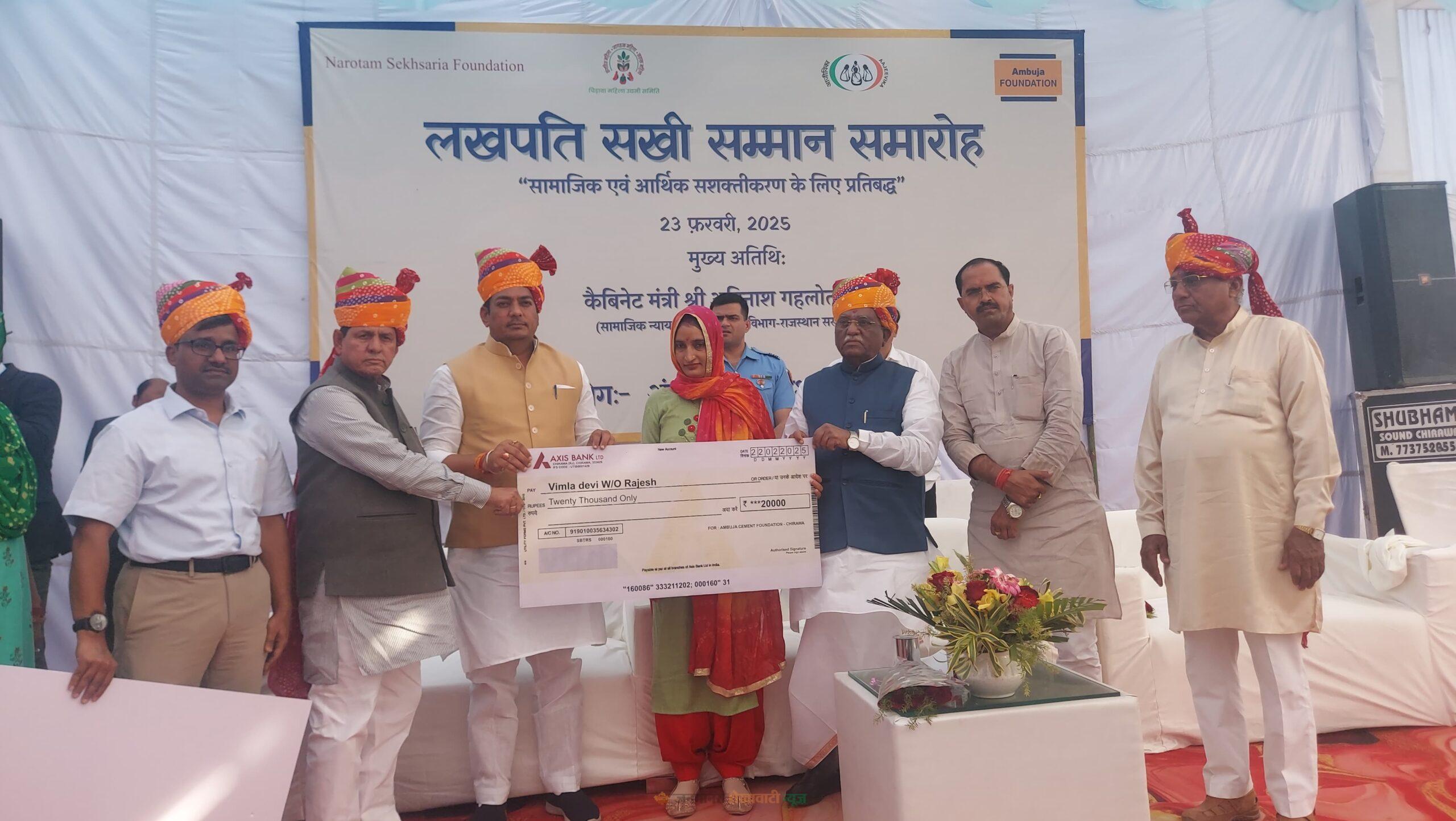 समारोह में राजस्थान सरकार के प्रभारी मंत्री अविनाश गहलोत ने कहा कि प्रधानमंत्री नरेंद्र मोदी ने महिलाओं के आर्थिक और सामाजिक सशक्तिकरण के लिए यह योजना शुरू की थी। उन्होंने बताया कि इस वर्ष राज्य सरकार ने 3 लाख लखपति दीदी बनाने का लक्ष्य तय किया है। गहलोत ने अंबुजा फाउंडेशन के कार्यों की सराहना करते हुए कहा कि संस्था महिलाओं के कौशल विकास और प्रशिक्षण के क्षेत्र में सराहनीय योगदान दे रही है।