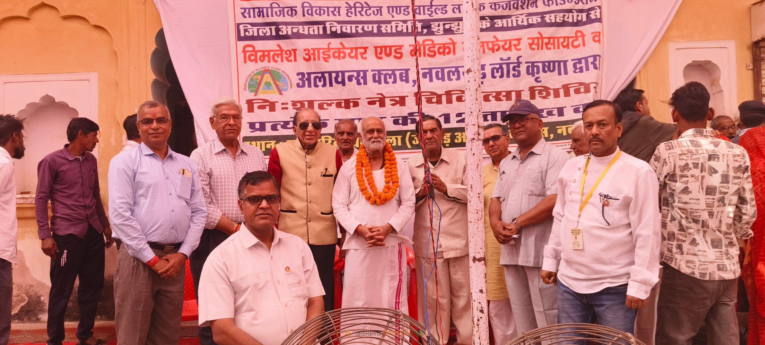 नवलगढ़ : शारदा क्रोपकेम लिमिटेड बंबई के आर्थिक सौजन्य से सामाजिक विकास हेरिटेज एण्ड वाइल्ड लाइफ कंजर्वेशन फाउण्डेशन द्वारा जिला अन्धता निवारण समिति झुन्झुनू के आर्थिक सहयोग, डाॅ विमलेश आई केयर मेडिको सोसासटी तथा अलायन्स क्लब नवलगढ़ लार्ड कृष्णा द्वारा आयोजित 215 वां निःशुल्क नेत्र चिकित्सा शिविर छावसरिया धर्मशाला में आयोजित किया गया। शिविर में 272 रोगी लाभान्वित, 76 रोगियों का आपरेशन के लिये चयन किया गया जिनका आपरेशन जांगिड अस्पताल मे डाॅ अविनाश पुरोहित की टीम द्वारा किये जायेंगे।