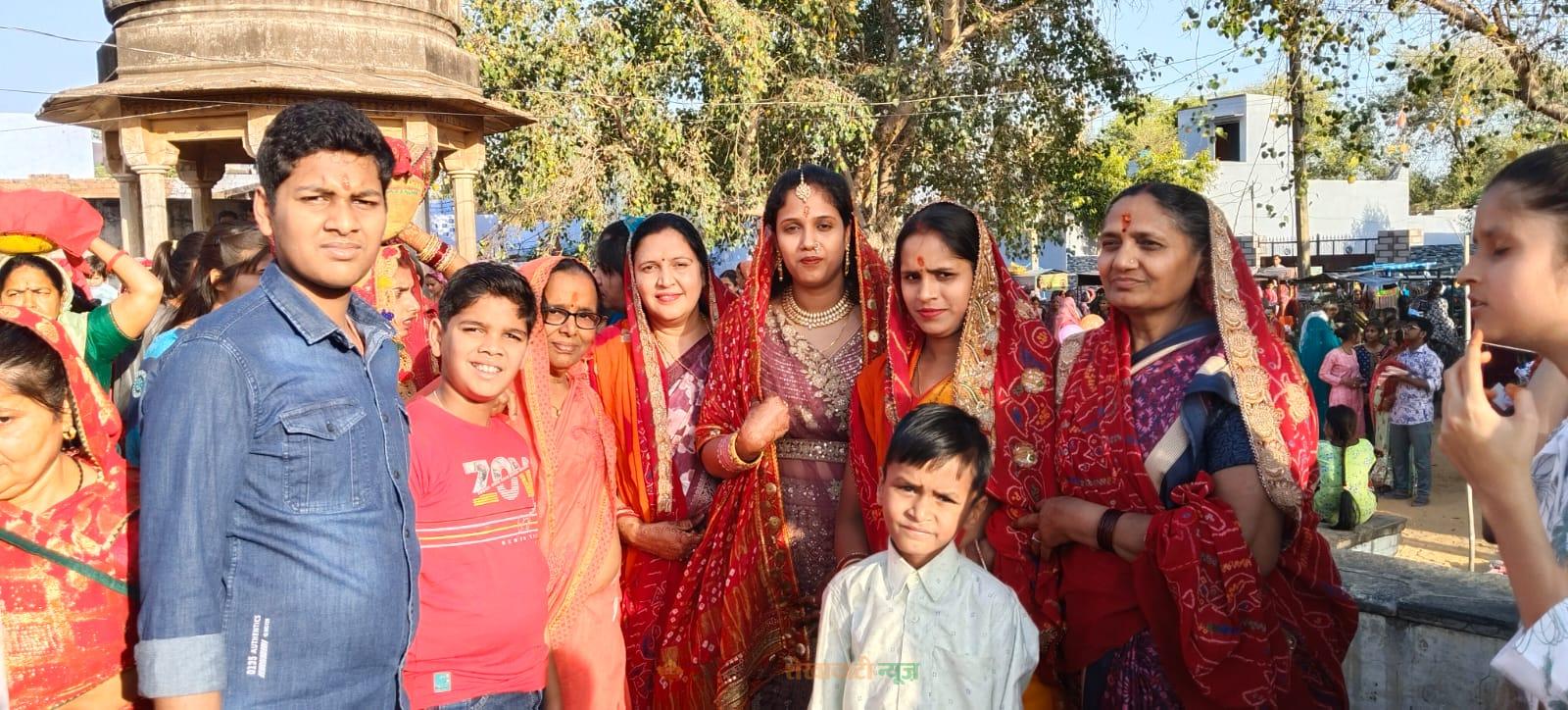 चिड़ावा : रविवार को गणगौर पर्व धूमधाम और पूरे उत्साह के साथ मनाया गया। हालांकि चिड़ावा में गणगौर की सवारी नहीं निकलती है। लेकिन गणगौर पर प्राचीन पोद्दारवालों कुआं के पास मेला भरता है। जिसमें हजारों की संख्या में महिलाएं, नवविवाहिताएं और युवतियां सजधज कर पहुंची। गीत गाते हुए कुएं पर पहुंची और पूजा अर्चना के साथ गणगौर को कुएं में विसर्जित किया गया। इससे पहले इस बार 18 दिनों तक गणगौर की पूजा नवविवाहिताओं ने की। जिसमें महिलाएं और युवती भी शामिल हुई। हर दिन पूजा अर्चना में भी नवविवाीिताओं में उत्साह देखा गया। वहीं आज विसर्जन के वक्त भी मेले में गणगौर के साथ सेल्फी लेने का क्रेज देखा गया।