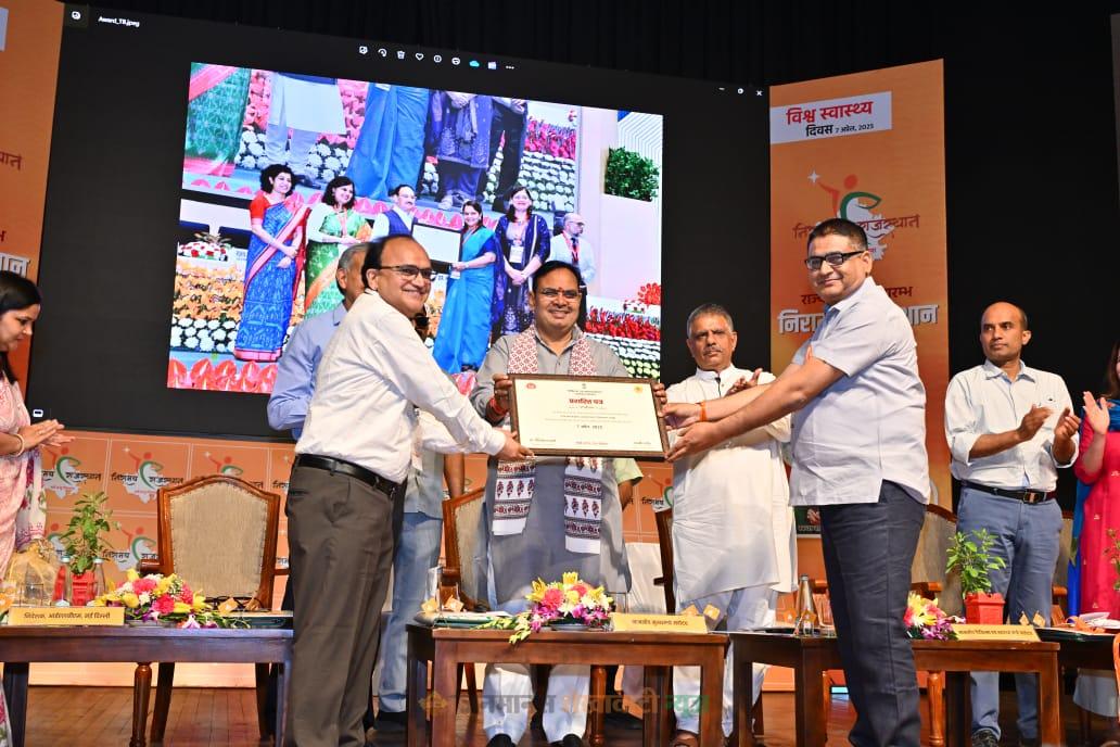 झुंझुनूं : विश्व स्वास्थ्य दिवस के अवसर पर जयपुर में राज्य स्तरीय निरामय राजस्थान अभियान सहित विभिन्न कल्याणकारी योजनाओं का शुभारंभ मुख्यमंत्री भजनलाल शर्मा ने किया। इस अवसर पर चिकित्सा मंत्री गजेंद्र सिंह सहित विभाग के अधिकारी भी उपस्थित थे। इस मौके पर मुख्यमंत्री भजनलाल शर्मा व चिकित्सा मंत्री गजेंद्रसिंह द्वारा टीबी मुक्त ग्राम पंचायत अभियान के स्टेट नोडल ऑफिसर डॉ. सत्यनारायण धौलपुरिया और झुंझुनूं सीएमएचओ डॉ. छोटेलाल गुर्जर को टीबी मुक्त ग्राम पंचायत को भारत में उल्लेखनीय कार्य के लिए सम्मानित किया गया। गौरतलब है कि सेंट्रल हेल्थ मंत्री जेपी नड्डा के द्वारा राजस्थान सरकार को 24 मार्च को दिल्ली में सम्मानित किया था।