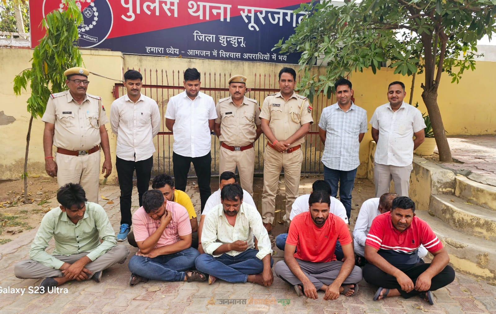 होटल में जुआ खेलते 9 आरोपी गिरफ्तार:झुंझुनूं की सूरजगढ़ पुलिस की कार्रवाई; 5.45 लाख रुपए बरामद किए