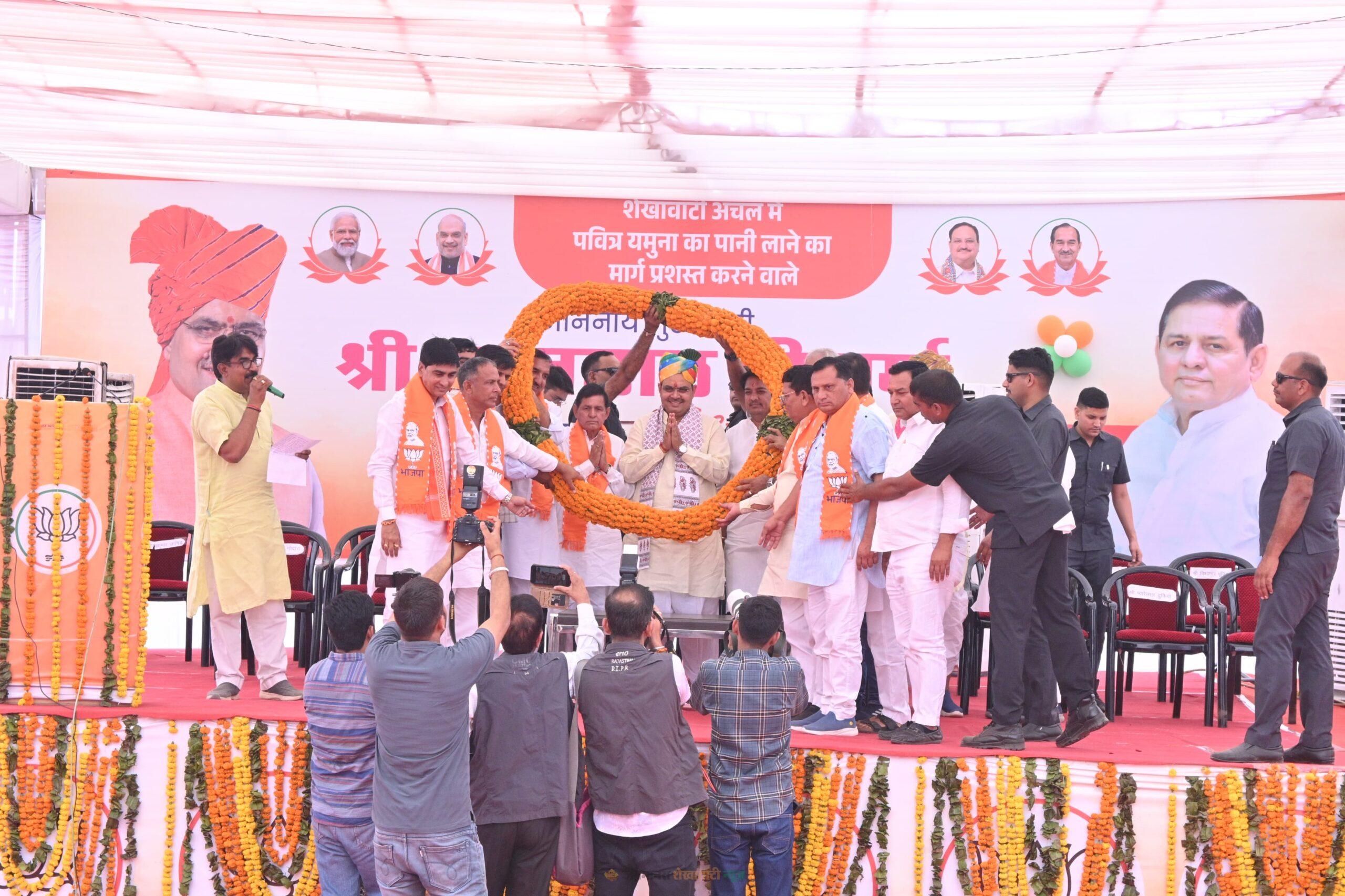 हमारा एमओयू हुआ, इसी बीच हरियाणा के चुनाव आ गए। उनकी (विपक्ष) नीयत देखिए, उन्होंने घोषणा पत्र में लिख दिया था कि जब हरियाणा में हमारी सरकार आएगी तो राजस्थान से यमुना जल समझौता रद्द कर देंगे। तब मैंने कहा था समझौता तब रद्द करोगे, जब आपकी सरकार आएगी। किसी कीमत पर कांग्रेस की सरकार आने वाली नहीं है, क्योंकि शेखावाटी के लोगों के मन के भाव और आत्मा बोल रही थी कि हरियाणा में बीजेपी आएगी।
