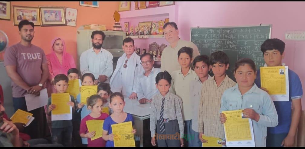वार्षिक परीक्षा परिणाम घोषित कर बच्चों को प्रगति पत्र एवं इनाम दिया गया