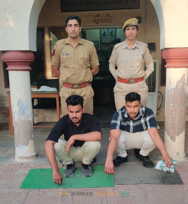 चिड़ावा : शहर में चल रहे कैफे में अनैतिक गतिविधियों को रोकने के लिए पुलिस द्वारा लगातार कार्यवाही की जा रही हैं। रविवार को डीएसपी विकास धींधवाल के निर्देश पर सीआई आसाराम गुर्जर के सुपरविजन में पुलिस टीम ने कैफे और होटलों की जांच की। जिसमें बिग मार्केट तथा डालमिया खेलकूद परिसर के पास कैफे में अनैतिक गतिविधियां मिलने पर गुगोजी की ढाणी, चिड़ावा निवासी विनोद सैनी और दुधवा खारा निवासी अशोक को गिरतार किया गया। वहीं कैफे में मिली महिला को हिदायत देकर छोड़ दिया गया। पुलिस टीम में थानाधिकारी आसाराम गुर्जर, हैड कांस्टेबल प्रवीण कुमार, कांस्टेबल संजय कुमार, सुरेंद्रसिंह, महिला कांस्टेबल उर्मिला, चालक विकास आदि शामिल थे।