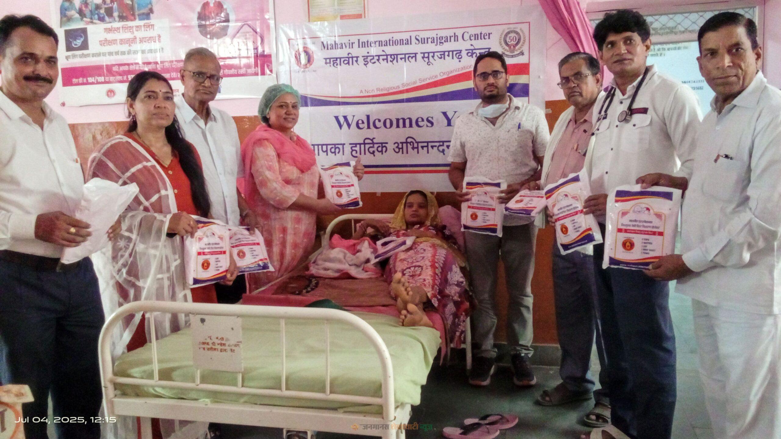 झुंझुनूं : महावीर इंटरनेशनल केंद्र सूरजगढ द्वारा आज 4 जुलाई को महावीर इंटरनेशनल के स्थापना दिवस व स्वामी विवेकानंद की पुण्यतिथि के अवसर पर राजकीय सामुदायिक स्वास्थ्य केंद्र सूरजगढ़ पर नवजात शिशुओं के लिए बेबी किट का वितरण किया गया। इस अवसर पर लोकतंत्र सेनानी व भामाशाह सज्जन कुमार अग्रवाल द्वारा वार्ड में भर्ती मरीजों व उनके साथ आए परिजनों को फल व बिस्किट वितरित किए गए। इस मौके पर डॉ. हरेंद्र धनखड़ का BCMO बनने पर महावीर इंटरनेशनल केंद्र सूरजगढ़ द्वारा माला व दुपट्टा पहना कर स्वागत किया गया। कार्यक्रम में लोकतंत्र सेनानी व भामाशाह सज्जन कुमार अग्रवाल, महावीर इंटरनेशनल केंद्र सूरजगढ़ के अध्यक्ष वीर मनोहर लाल जांगिड़, उपाध्यक्ष प्रिंसिपल वीरा मंजू ठोलिया मृदुला, सचिव वीर डॉ. अनिल शर्मा अनमोल, पूर्व बैंक मैनेजर वीर बाबूलाल बडगूजर, BCMO डॉ हरेंद्र धनखड़, डॉ. नेत्रपाल सिंह, नर्सिंग ऑफिसर सुभिता फोगाट सहित काफी संख्या में स्वास्थ्यकर्मी उपस्थित थे।