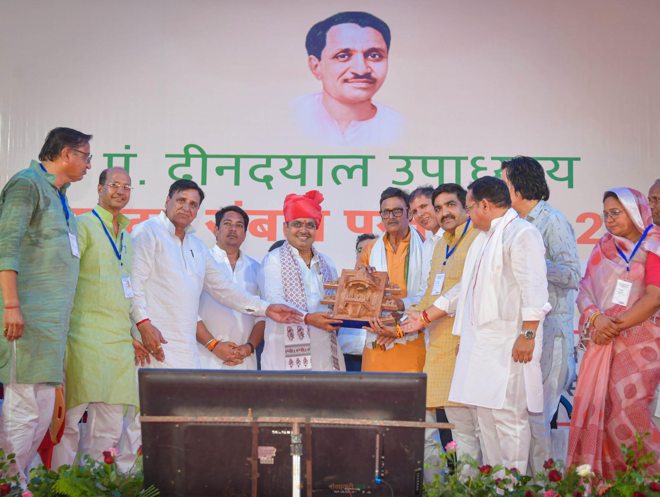 सीएम शर्मा ने आमसभा से पूर्व पंडित दीनदयाल उपाध्याय अंत्योदय संबल पखवाड़े अंतर्गत आयोजित शिविर का अवलोकन किया और विभिन्न योजनाओं के लाभार्थियों को प्रमाण पत्र व चेक वितरित किए। उन्होंने समारोह परिसर में पौधरोपण किया। रक्तदान शिविर का भी अवलोकन किया। सीएम ने अल्पसंख्यक बालक आवासीय स्कूल व मुख्यमंत्री पुर्नवास गृह का लोकार्पण किया तथा कृषि कॉलेज का शिलान्यास किया। इस मौके पर उन्होंने छात्रावास के लिए बेशकीमती जमीन देने वाले भामाशाहों को भी सम्मानित किया।