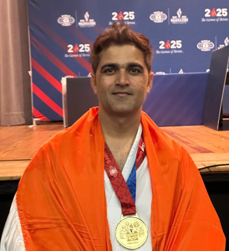 चिड़ावा : 27 जून से 6 जुलाई तक अमेरिका के बर्मिघंम में आयोजित हुई 21वीं वर्ल्ड पुलिस प्रतियोगिता में भारत का प्रतिनिधित्व करते हुए झुंझुनूं जिले के मंडावा पंचायत समिति के दिलाई गांव के अनिल शर्मा पुत्र शिव शंकर शर्मा ने कराते खेल में स्वर्ण पदक प्राप्त किया। प्रतियोगिता में 70 देशों के खिलाड़ियों ने भाग लिया। अनिल शर्मा ने इस उपलब्धि का श्रेय अपने माता-पिता एवं गुरुजनों के साथ-साथ ताऊजी स्वर्गीय भवानी शंकर मिश्रा एवं स्वर्गीय आशुतोष शर्मा को दिया। ताऊ चाहते थे कि अनिल भारत का प्रतिनिधित्व करे। आचार्य पी. एस शेखावत ने बताया कि शर्मा की इस उपलब्धि से पूरे जिले के खेल प्रेमियों में उत्साह की लहर है। खिलाड़ी शर्मा से प्रेरित होकर देश को गौरवान्वित करेंगे। गौरतलब है कि अनिल कुमार शर्मा वर्तमान में CRPF में कार्यरत हैं।