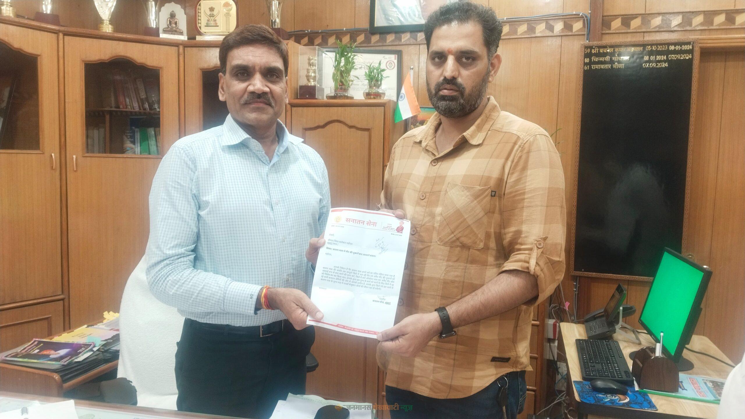 श्रावण मास में मीट की दुकानें बंद रखने की मांग, सनातन सेना ने सौंपा ज्ञापन