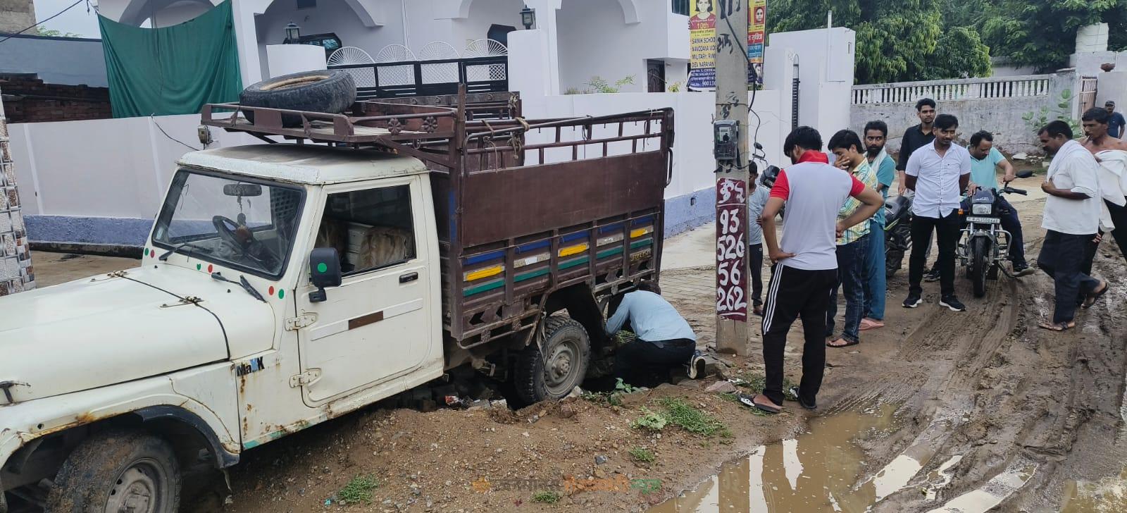 जलदाय विभाग की लापरवाही, डेढ माह पूर्व पानी की लाइन ठीक करने के लिए खोदे गड्ढे में फसी पीकअप, जलदाय विभाग को बड़े हादसे का इंतजार