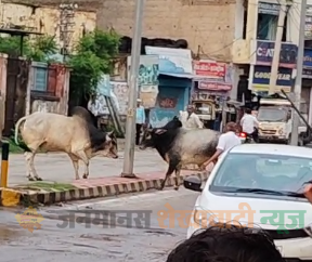 सांडों के आतंक से लोगों में दहशत का माहौल, सांडों के आतंक से एक गाड़ी शीशे टूटे,कई लोग बचे बाल बाल