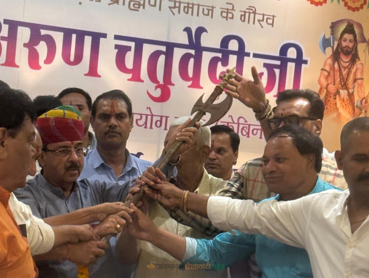 जयपुर : होटल प्राइम सफारी में राजस्थान सरकार के वित्त आयोग अध्यक्ष व कैबिनेट मंत्री डॉ. अरुण चतुर्वेदी का ब्राह्मण समाज के 20 संगठनों की ओर से भव्य सम्मान किया गया। कार्यक्रम की शुरुआत भगवान परशुराम की प्रतिमा के समक्ष दीप प्रज्वलन से हुई।