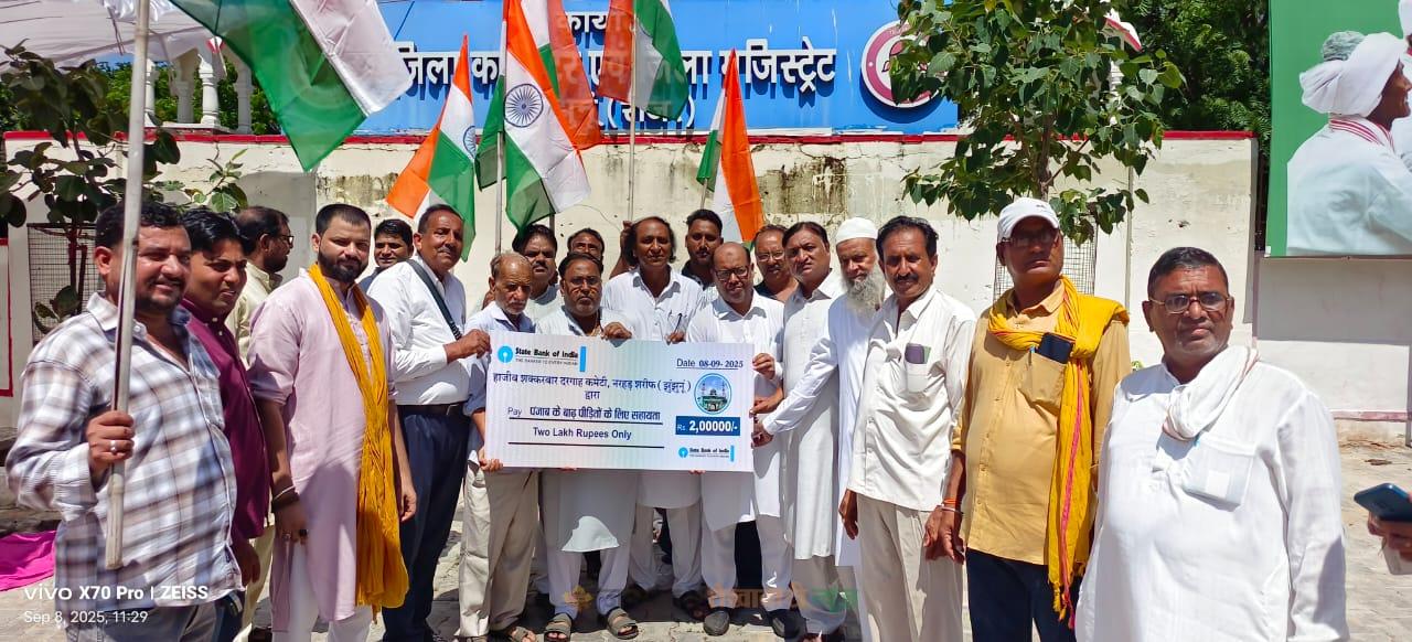झुंझुनूं में पंजाब बाढ़ पीड़ितों के लिए सहायता राशि जुटाई:नरहड़ दरगाह ने की 2 लाख की मदद; बोले- इंसानियत से बड़ा कोई धर्म नहीं