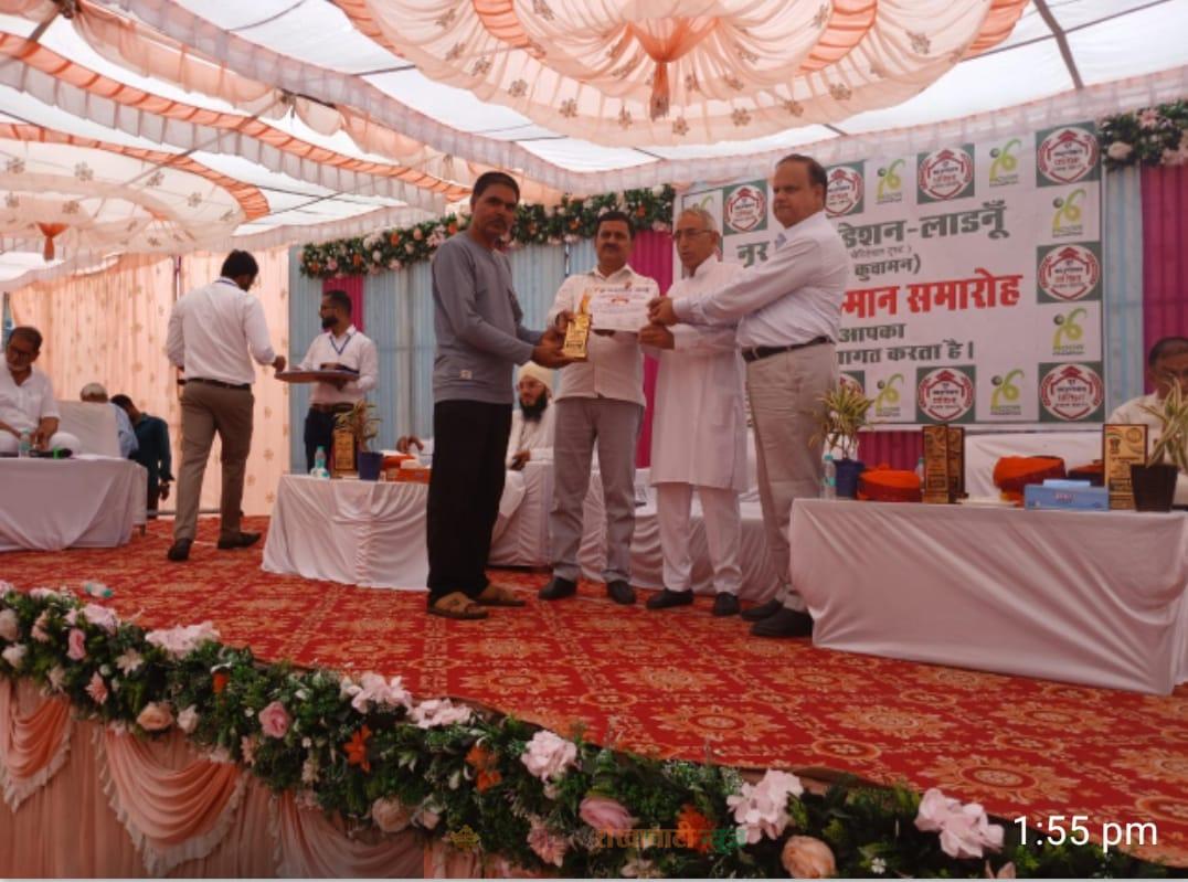 लाडनूं : नूर फाउंडेशन के तत्वावधान में आज आठवी वीं पट्टी स्थित हाथी नोहरा में सुबह 10 बजे से उपखंड स्तरीय मुस्लिम प्रतिभा सम्मान समारोह आयोजित किया गया। जिसमें क्षेत्र की 165 प्रतिभाओं को सम्मानित किया गया ।नूर फाउंडेशन के संरक्षक / अध्यक्ष डॉ. गुलाब नबी सिसोदिया ने बताया कि समारोह में लाडनूं विधायक मुकेश भाकर, पूर्व मदरसा बोर्ड अध्यक्ष हिदायत खान धोलिया एवं सेवानिवृत आईएएस जाकिर हुसैन जयपुर, जनसेवक लियाकत अली, दलित नेता कालूराम गेनाणा, छात्र नेता शुभम रेवाड़, हमीद खां जयपुर, डाक्टर शमशाद अली चूरू, डीवाईएसपी विक्की नागपाल, डाक्टर बी एस रूहेला बतौर अतिथि के तौर पर कार्यक्रम में शामिल हुए तथा शिक्षा, समाजसेवा, पर्यावरण, पत्रकारिता, सरकारी नौकरियो आदी में उत्कृष्ट उपलब्धियां हासिल करने वाली प्रतिभाओं को सम्मानित करके उनकी हौसला अफजाई की गई।
