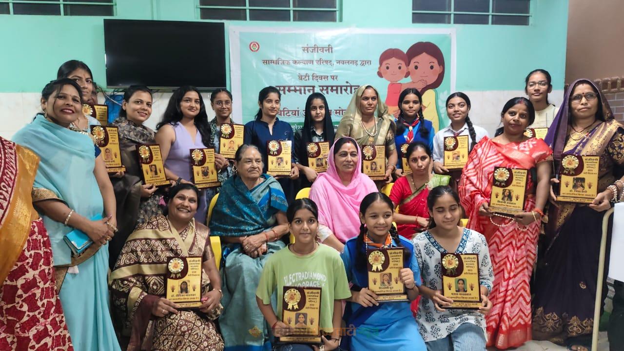 नवलगढ़ : दुर्गाष्टमी के पावन अवसर पर संजीवनी संस्था द्वारा जांगिड अस्पताल परिसर में एक विशेष कार्यक्रम आयोजित किया गया, जिसमें नवलगढ़ की 21 मेधावी बेटियों को उनके उत्कृष्ट योगदान के लिए सम्मानित किया गया। ये बेटियां चिकित्सा, शिक्षा, कला, संगीत, साहित्य, खेलकूद और समाजसेवा जैसे विभिन्न क्षेत्रों में उल्लेखनीय प्रदर्शन कर रही हैं। उन्हें मोतियों की माला और आकर्षक प्रतीक चिंह भेंट कर उनका अभिनंदन किया गया।