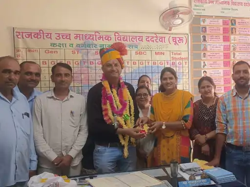 सादुलपुर : राजकीय उच्च माध्यमिक विद्यालय ददरेवा में व्याख्याता नरेश जांगिड़ ने वाइस प्रिंसिपल पद पर प्रमोशन के बाद कार्यभार ग्रहण किया। उन्होंने माध्यमिक शिक्षा निदेशक के आदेशानुसार यह पदभार संभाला। प्रिंसिपल राजकुमार पूनिया के स्टेट लेवल स्पोर्टस टूर्नामेंट मे डेपुटेशन के कारण वीडियो कॉन्फ्रेंसिंग के माध्यम से कार्यग्रहण प्रक्रिया पूरी करवाई। इस अवसर पर सहायक प्रशासनिक अधिकारी ओम प्रकाश शर्मा और सीनियर टीचर भलाराम खीचड़ ने नरेश जांगिड़ का स्वागत किया। कार्यक्रम में टीचर नरेंद्र कसवा, अल्ताफ खान, जगदीश पूनिया, दलीप पूनिया, अनीता शर्मा, पूनम, सीमा, सरिता भारती, सुमेर, अभिलाष, चेतराम, महेंद्र और शंकरलाल ढाका सहित अन्य स्टाफ सदस्य उपस्थित रहे।