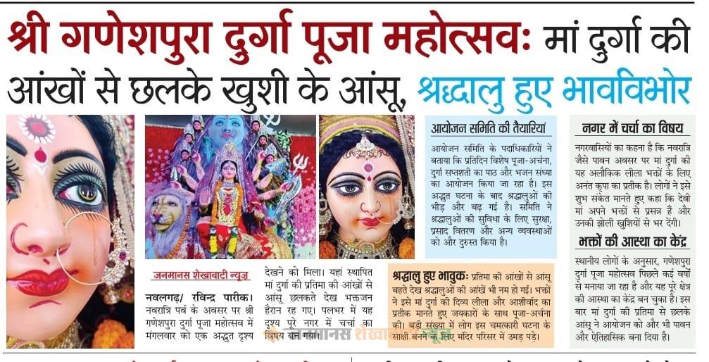 श्रद्धालुओं का कहना है कि 23 सितंबर को माता की प्रतिमा से आंखों में आंसू छलकते देखे गए थे। भक्तों का मानना है कि यह घटना किसी न किसी दिव्य संकेत से जुड़ी हुई है। घटना की जानकारी मिलते ही नवलगढ़ चेयरमैन राजकुमार सैनी जिला अस्पताल पहुंचे और घायलों का हालचाल जाना। उनकी देखरेख में सभी घायलों का इलाज किया गया। फिलहाल घायलों की स्थिति खतरे से बाहर बताई जा रही है।