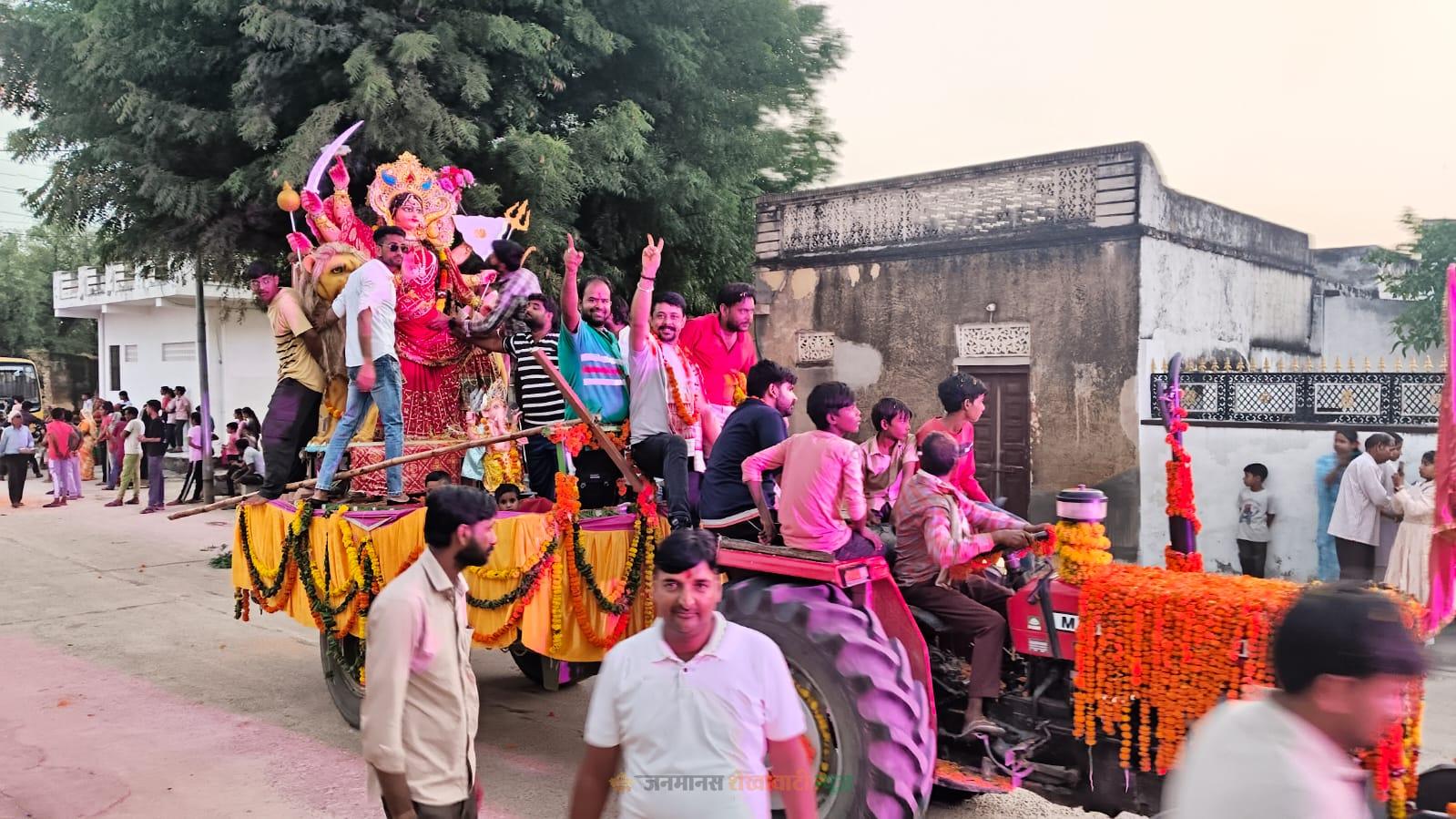 मुकुंदगढ़ : कस्बे के विभिन्न स्थानों पर आयोजित हो रही नौ दिवसीय दुर्गा पूजा महोत्सव का समापन बुधवार को प्रतिमाओं के विसर्जन के साथ हुआ । वार्ड चार में सदाबहार दुर्गा पूजा, ठड्डेवाले बालाजी दुर्गा पूजा, श्री पंचमुखी महादेव दुर्गा पूजा, गढ़ के पीछे नवदुर्गा पूजा, वार्ड 24 में रोहिड़ावाला बालाजी दुर्गा पूजा, वार्ड 11 में नीमवाली दुर्गा पूजा, वार्ड एक में युवा नव निर्माण दुर्गा पूजा, वार्ड दो में सीताराम मंदिर दुर्गा पूजा व मंडी कमेटी गेस्ट हाउस में श्री मंडी धार्मिक उत्सव दुर्गा पूजा के सार्वजनिक पांडालों व घरों में स्थापित प्रतिमाओं का शोभायात्रा जुलूस मुख्य मार्गों से होते हुए श्रीकुंभजी बगीची सामने विसर्जन कुंड पर पहुँचा। जहाँ पर आरती के बाद प्रतिमाओं को सनातन परम्परा से विसर्जित किया गया। शोभायात्रा में बच्चे, महिलाएं डीजे पर नाचते गाते गुलाल उड़ाते चल रहे थे। जुलूस का मुख्य बाजार में पुष्पा वर्षा से स्वागत किया गया। इससे पहले मंगलवार को महाआरती व हवन हुआ । शोभायात्रा में भक्तों एवं सामाजिक संगठनों द्वारा पेय जल की व्यवस्था की गई। नगरपालिका प्रशासन द्वारा विसर्जन कुंड पर विद्युत व्यवस्था की गई।