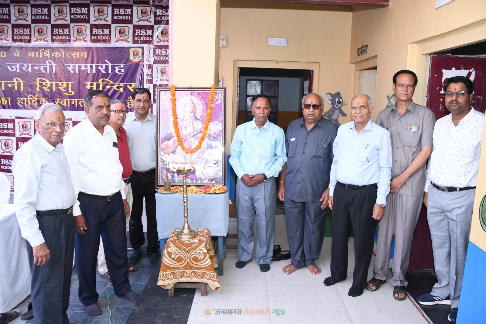 झुंझुनूं : स्थानीय मोदी रोड स्थित राजस्थानी शिशु मन्दिर का 50वां वार्षिकोत्सव स्वर्ण जयन्ती समारोह का उद्घाटन समारोह आज आयोजित किया गया । निदेशक विवेक शर्मा ने बताया कि विद्यालय के स्वर्ण जयन्ती के अवसर पर चार दिवसीय कार्यक्रमों में प्रथम दिन विभिन्न जिला स्तरीय प्रतियोगिताओं का आयोजन किया गया जिसमें स्व जगदीश प्रसाद टिबड़ेवाल की स्मृति में उनके परिवार के सौजन्य से श्रुतलेख प्रतियोगिता स्व. सुधाकर शर्मा की स्मृति में उनके परिवार के सौजन्य से सामान्य ज्ञान प्रतियोगिता स्व. मोहनाराम दड़िया की स्मृति में निबन्ध प्रतियोगिता डॉ दयाशंकर बावलिया की स्मृति में उनके परिवार के सौजन्य से चित्रकला प्रतियोगिता का आयोजन किया गया जिसमे विभिन्न विद्यालयों के 400 प्रतिभागियों ने भाग लिया । समारोह में मुख्य अतिथि डॉ उम्मेद सिंह शेखावत अध्यक्ष मान महेन्द्र सिंह भाटी ने सर्वप्रथम माँ सरस्वति के समक्ष दीप प्रज्जवलित कर कार्यक्रम का शुभारम्भ किया । इस अवसर पर सचिव सज्जन कुमार शर्मा, अमरनाथ जांगिड़, एडवोकेट अनुपम शर्मा, जयप्रकाश शर्मा, डॉ एस एन शुक्ला, महेन्द्र सैनी, श्याम सुन्दर जालान, पुष्कर जागिड, नागरमल जागिड़, जाकिर सिद्की व अनेक गणमान्य उपस्थित रहे । आज दूसरे दिन प्रथम विधानसभा अध्यक्ष स्व. पण्डित नरोक्तम लाल जोशी की स्मृति में उनके पुत्र डॉ विनोद शंकर जोशी के सौजन्य से जिला स्तरीय वाद विवाद प्रतियोगिता का आयोजन होगा। मुख्य समारोह सांस्कृतिक कार्यक्रम एवं प्रतिभा सम्मान समारोह के रूप में सोमवार को सम्पन्न होगा