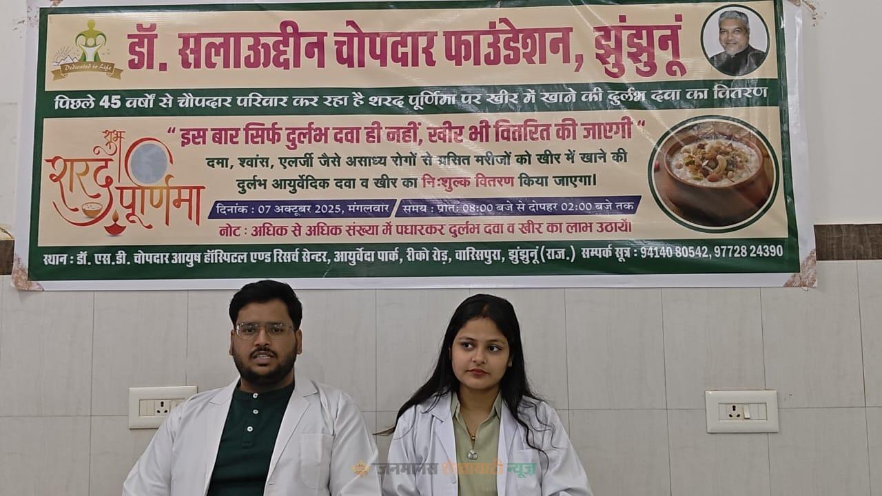 झुंझुनूं : आयुर्वेद और अध्यात्म के संगम का प्रतीक बन चुका डॉ. सलाउद्दीन चोपदार फाउंडेशन इस वर्ष भी शरद पूर्णिमा के पावन अवसर पर दमा, श्वांस, एलर्जी जैसे असाध्य रोगों के उपचार हेतु दुर्लभ औषधि युक्त खीर का वितरण करेगा।